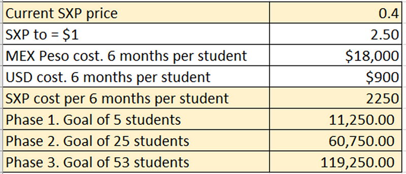 - To get started we need enough SXP to pay for 5 scholarships.