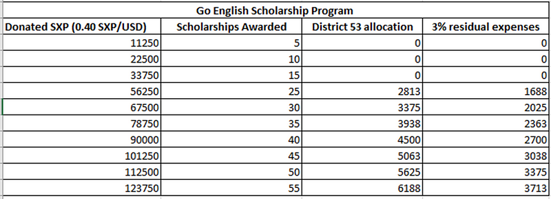 - The goal in Phase 2 is to receive enough SXP to award 25 scholarships paid for by donations to the scholarship program. We will only issue scholarships as funds become available by way of donations.