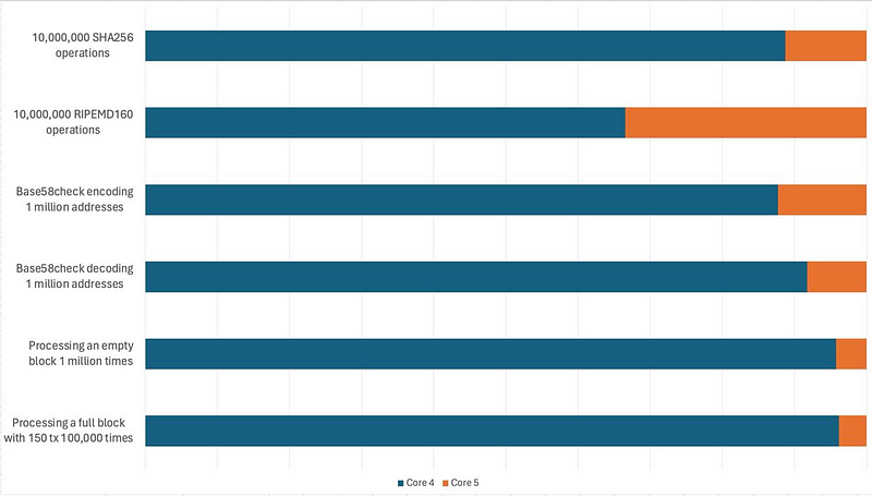 To give a concrete example, on a MacBook Pro M1, cryptographically verifying and processing a block containing 150 transactions took about 18ms in Core 4. In contrast, Core 5.0 handles the same block with 150 transactions in roughly 0.7ms. That means a full block is processed in less than a millisecond.